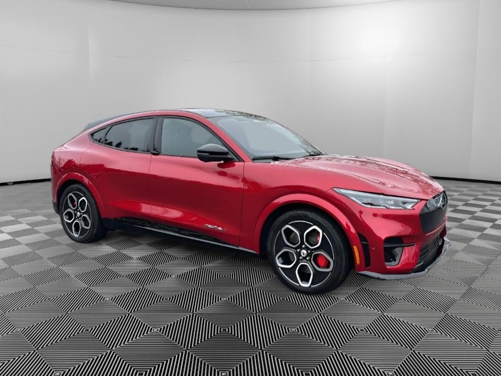 Protect this mid-size suv from unwanted accidents with a cutting edge backup camera system. It has auto-adjust speed for safe following. It is pure luxury with a heated steering wheel. The installed navigation system will keep you on the right path. The leather seats in this 2023 Ford Mustang Mach-E are a must for buyers looking for comfort, durability, and style. This 2023 Ford Mustang Mach-E comes equipped with Android Auto for seamless smartphone integration on the road. Apple CarPlay: Seamless smartphone integration for the vehicle - stay connected and entertained on the go! It features a hands-free Bluetooth phone system. Maintaining a stable interior temperature in this unit is easy with the climate control system. Conquer any rainy, snowy, or icy road conditions this winter with the all wheel drive system on this vehicle. This unit gleams with a flashy red exterior. This vehicle has a Electric Motor high output engine.